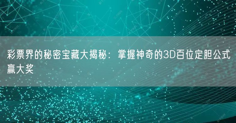 揭秘彩票界隐藏的秘密宝藏,掌握神奇的3D百位定胆公式,助你赢取丰厚大奖!本文带你深入了解彩票界的奥秘,助你成为幸运儿。