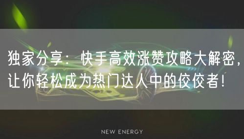 独家分享:快手高效涨赞攻略大解密,让你轻松成为热门达人中的佼佼者!
